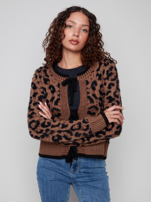 Bow Tie Jacquard Knit Cardigan