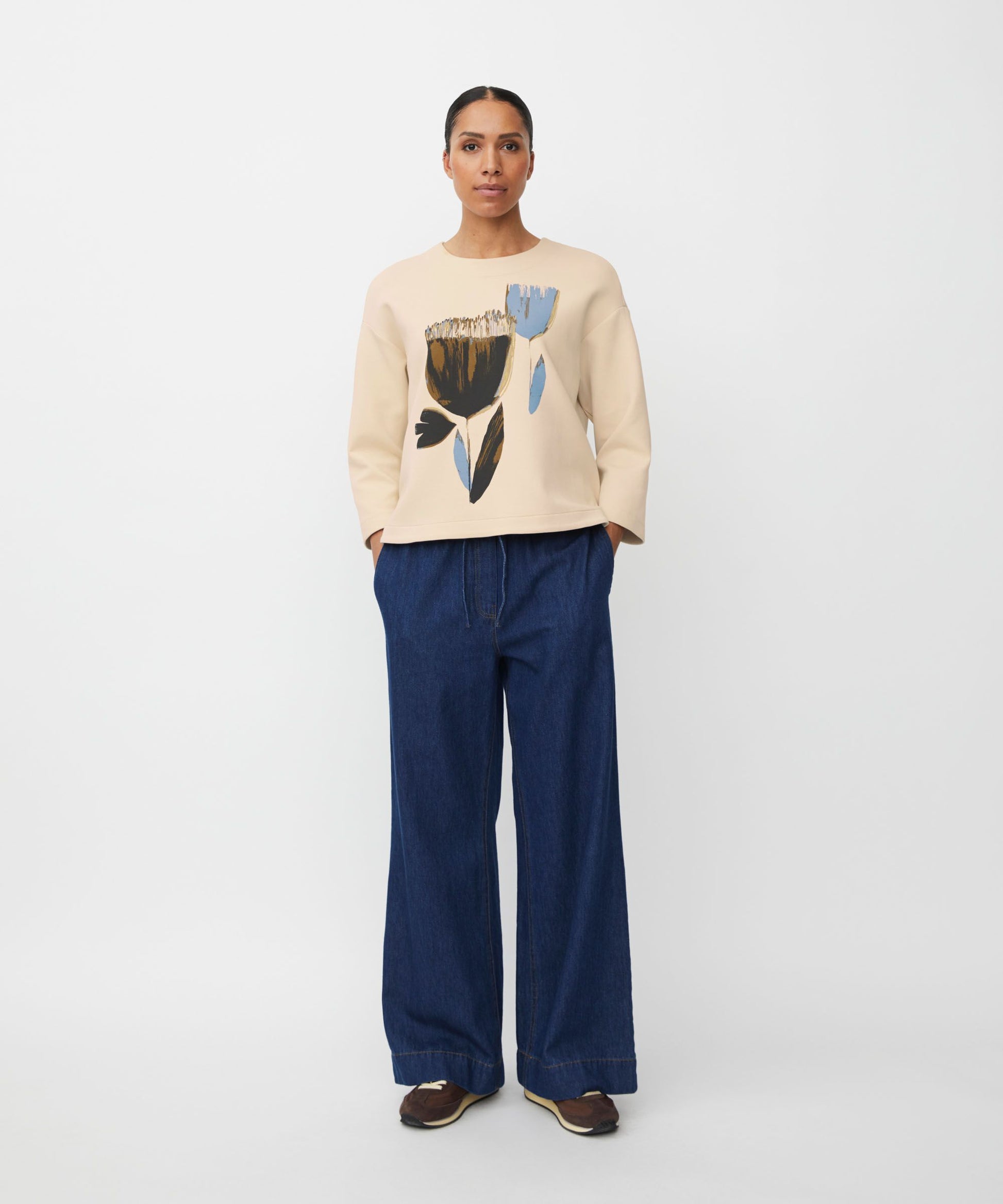 The hand-painted floral print on this top immediately catches the eye, adding plenty of personality to your look. Crafted from a soft, scuba-like fabric with a light, structured form, it feels both comfortable and modern. The classic, straight cut with a round neck and rounded hemline creates a relaxed yet elegant look. Style the top with anything from jeans to suit trousers—it can do it all.