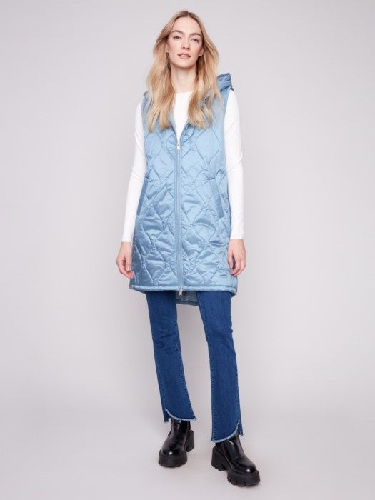 Pearlized Puffer Long Vest