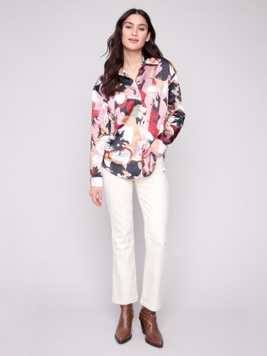 Printed Satin Button Down Shirt with Cuffs