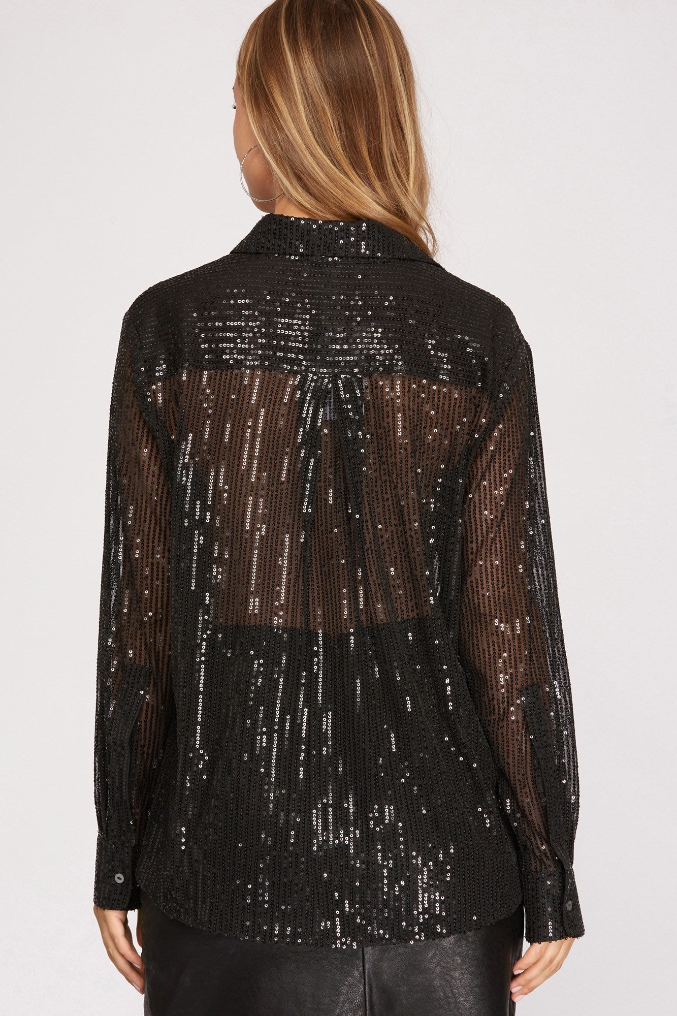 LONG SLEEVE SEQUIN BUTTON DOWN SHIRT
